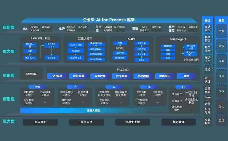 优游ub8问学智车解决方案是一套基于AI技术的汽车行业智能化系统,,,覆盖从底层算力到顶层AI应用的全栈方案。。。方案由算力层、、模型层和应用层组成:算力层,,,,方案支持多种一体机配置,,,,具备云端灵活部署、、、多云适配以及动态优化计算资源的能力;模型层,,,,优游ub8问学平台版提供了企业级AI应用一站式构建与管理平台,,,支持基于后训练强化技术的汽车企业专属模型的训练、、、评测和运营;应用层,,,,优游ub8问学DeepSeek版提供包括超级员工、、、智能招采、、、、智能营销、、智能客服、、、、AI for BI等一系列解决方案,,可助力汽车行业实现数字化转型,,,,让管理更智能、、响应更敏捷。。